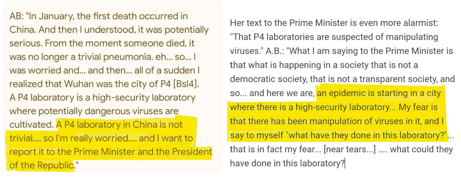 Intriguingly, the recent documentary revealed she had feared an artificial origin almost from the outset, and had sent strong warnings to both Prime Minister Édouard Philippe, and President Macron.