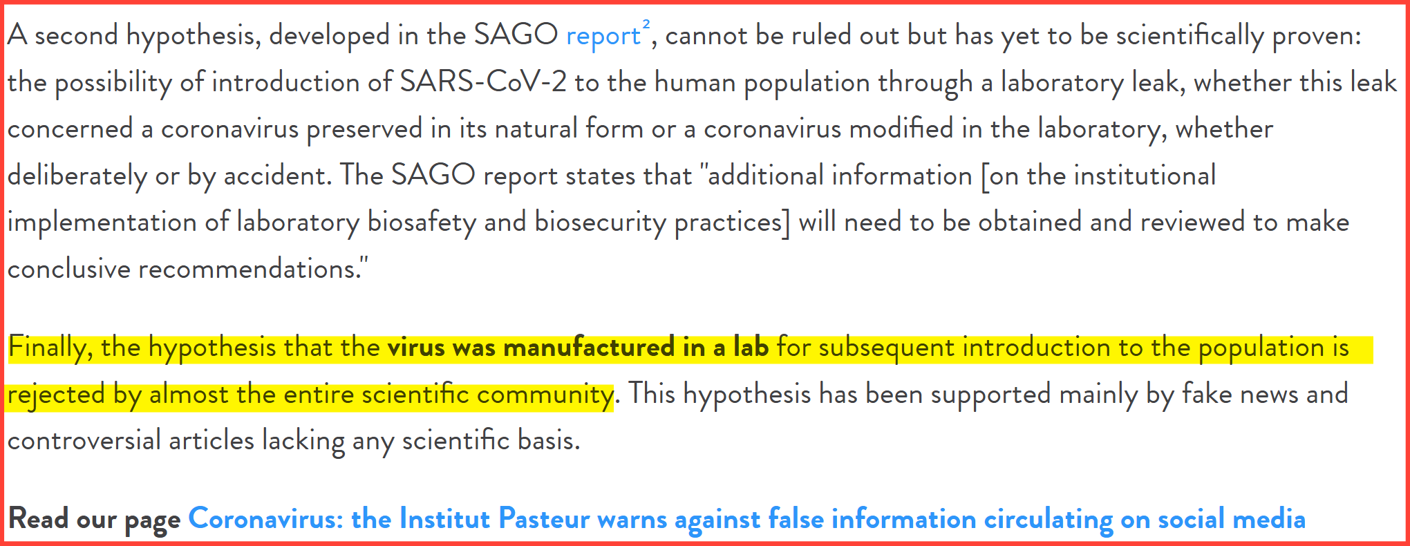 The conversion wasn’t really sudden or dramatic as it seems. Some French scientists have long been open to an artificial origin - but nuance matters. An artificial pathogen resulting from some misguided, but perhaps morally justifiable motive is acceptable, but that it was deliberately designed to be a bioweapon - is not.