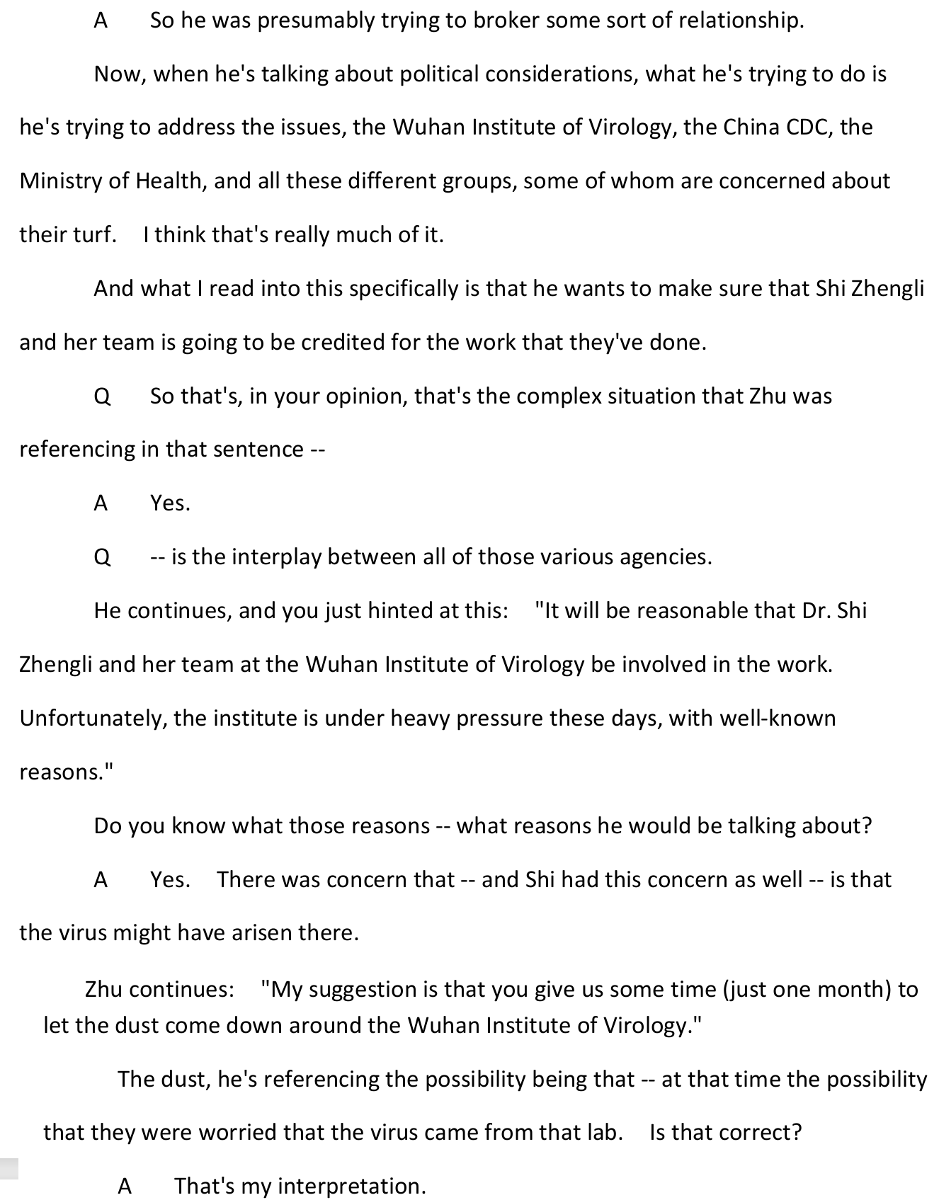 Ian Lipkin is also a friend and colleague of Chen Zhu since the SARS-1 period. Lipkin was also involved in setting up IPS in 2004. The US Select Subcommittee interview with Lipkin revealed he and Chen were engaged in ongoing email correspondence over the origin. Lipkin appears to downplay US suspicions of a natural origin to Chen, but proposes international involvement in an origin search.