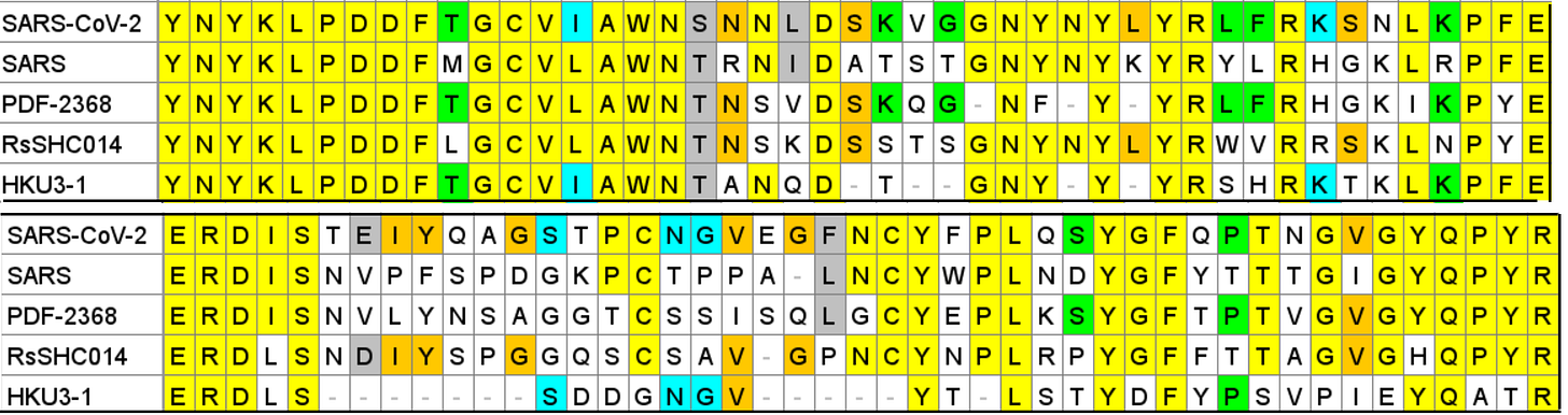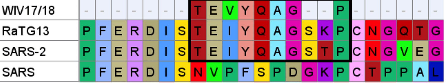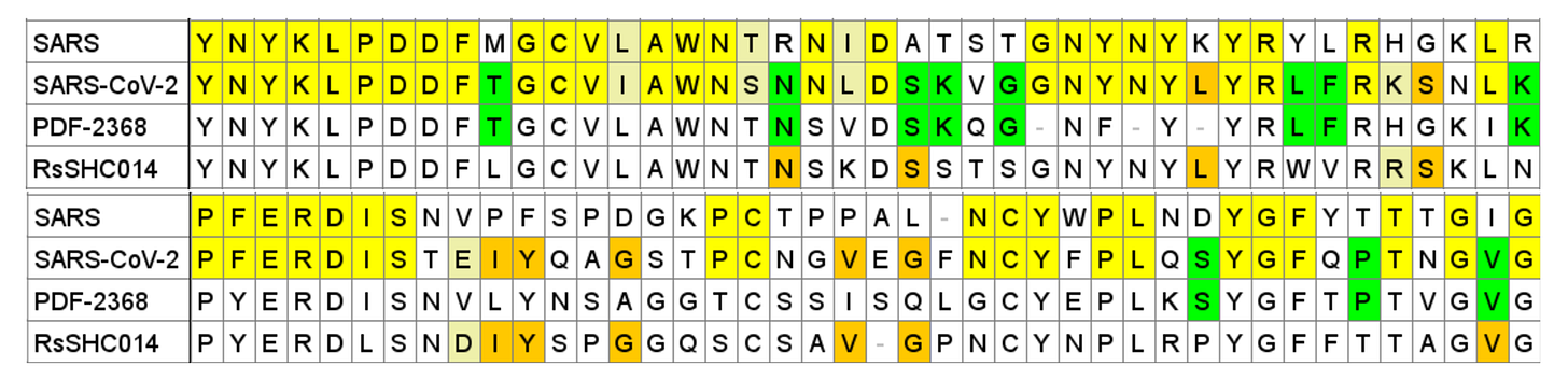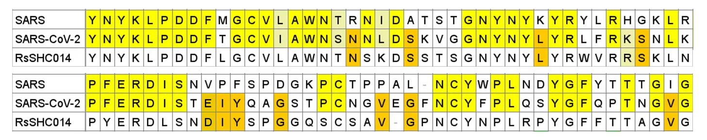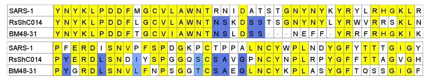RsSHC014 was already known to bind hACE2 so it would be an obvious candidate. As it happens, RsSHC014 shares several residues with SARS-CoV-2 that aren’t in SARS-1.