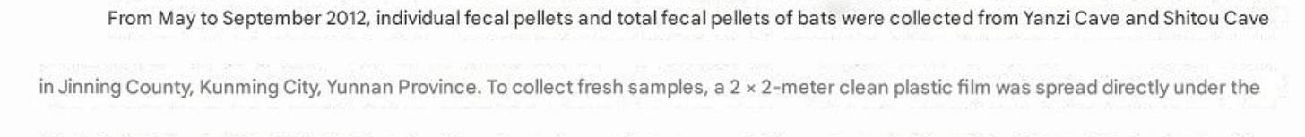 But - stranger still - an earlier WIV PhD student’s thesis stated WIV17/18 were collected in a cave near Kunming, not Mojiang, which is 300km and 5 hours drive away. So they seem to have changed the sampling location so that it corresponds to RaTG13.