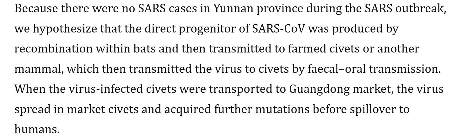 WIV may also have intended RaTG13 itself to have originated in the Kunming cave, rather than the Mojiang mine. In the PLoS paper “A rich gene pool…” single virus said to have been sampled from R. affinis in the Kunming cave, was never sequenced, and it doesn’t appear in phylogenetic trees. They were perhaps keeping their options open.