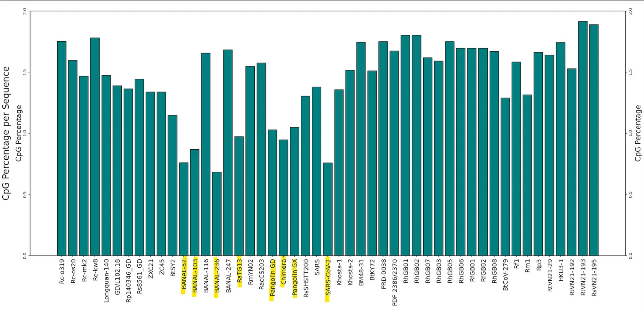 SARS-CoV-2 - and particularly the spike protein is extremely depleted in CpG dinucleotides (all this means as a C followed by a G in the nucleotide sequence). This has been hypothesized to be due to the virus evolving to evade the host immune system, by taking on the hosts own nucleotide bias (human and bat genomes are also CpG depleted). To an extent this is true of all coronaviruses, CG is usually in a range 1.5-3% of all nucleotide pairs, whereas if random, we’d expect 6.25%.