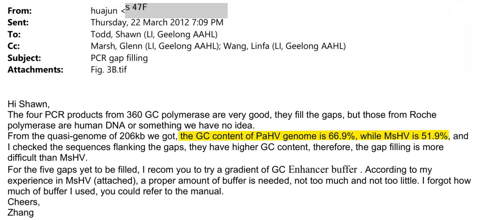 If you read my previous article, you’ll know about my woes FOI-ing documents from CSIRO. Almost all documents relating to SARS have disappeared. But they did manage to dig up some documents relating to other projects. I had requested all correspondence from Zhang Huanjun, the WIV intern who was running gain of function experiments in CSIRO’s BSL-4 lab. As a side project, he was sequencing a bat herpesvirus, and exchanging sequence data with CSIRO staff via email.