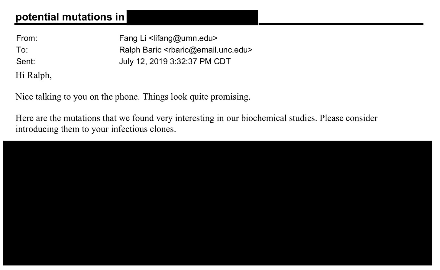 I don’t subscribe to theories Baric was directly involved in engineering SARS-CoV-2, but he was being circled by people with connections to WIV and AMMS. While he wasn’t working directly with Zhengli Shi, he was a collaborator and confidante of Fang Li who, though US based, has strong ties to Wuhan. Fang Li and Zhengli Shi were in turn collaborating on a review paper with Jie Cui - who was responsible for sequencing RaTG13, and I think central to a pre-planned cover-up.