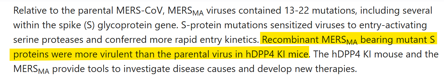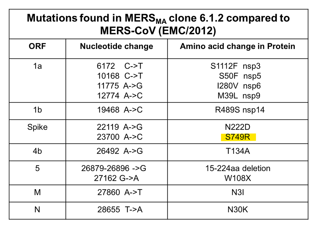 Recently A.M. Lisewski noticed in GenBank a sequence for a variant of MERS which had been passaged in mice over 30 times. This passaging resulted in only two spike mutations one of which was added an extra Arginine in the FCS.