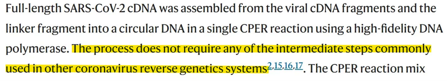 Although this paper doesn’t describe, per se, a reverse genetic system, it demonstrates prowess with overlapping PCR to stitch together genes produced synthetically. It also mentions DNA shuffling. In a previous article I showed evidence this technique may have been used in engineering SARS-1 and MERS.